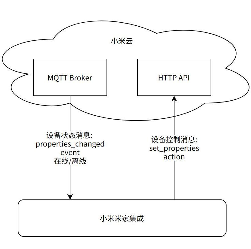 米家集成需要控制设备时,通过小米云 HTTP 接口向设备发送控制消息。设备收到小米云发来的下行消息后做出响应。